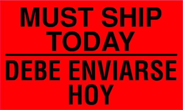 3" x 5" Adhesive Back Bilingual Shipping Labels, Must Ship Today/Debe Enviarse Hoy, Pk500