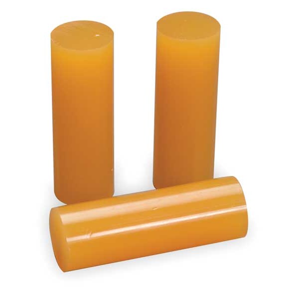 Hot Melt Adhesive, Tan, 1 in Diameter, 3 in Length, 50 sec Begins to Harden