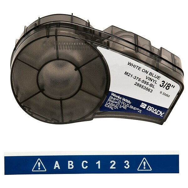 $30.24 / eachWeb priceAll Weather Permanent Adhesive Vinyl Label Tape, 3/8 in W x 21 ft L, White on BlueSKU G0147244Categories Adhesives, Epoxy & SealantsDescription Continuous Label Roll Cartridge, Compatible Grainger Part Number 53PJ33, Compatible Mfr Part Number R4400, Label Color Blue, Label Finish Gloss, Label Material Vinyl, Label Width 3/8 in, Material Properties Autoclavable, Printer Series Compatibility BMP21-LAB, BMP21-PLUS, M210, M210-LAB, M211, Ribbon Color White, Roll Length 21 ft, Vial/Tube Size 0.6 ml, For Print Method Thermal Transfer, Material Series B-595, Maximum Service Temperature 180 Degrees F, Minimum Service Temperature -40 Degrees FgraingerSKU: 3PXU2, mscSKU: , zoro_no: G0147244, mongo_id: 65bbe6443aaddbd5a901b4a7