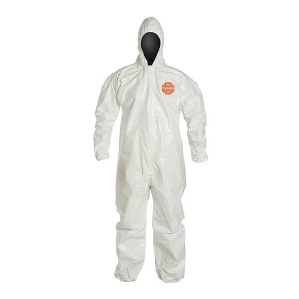 Hooded Coverall, 6 PK, White, Tychem(R) 4000, Adhesive