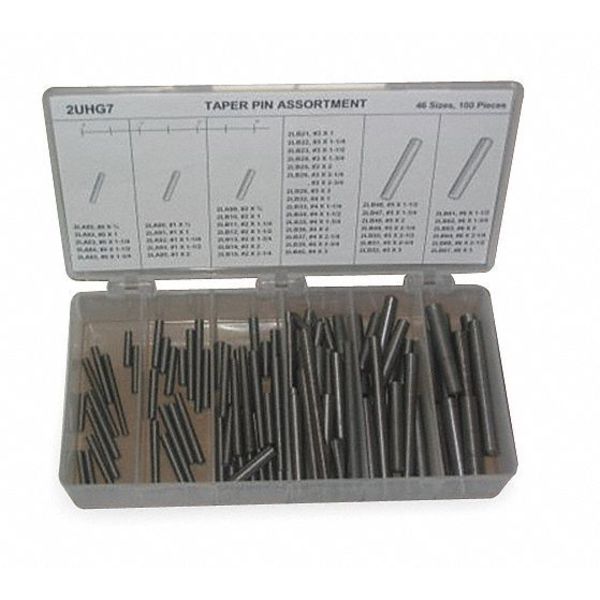Taper Pin Asst, Std, Stl, 100 Pcs, 46 Sizes