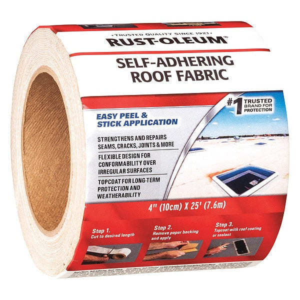 $23.36 / eachWeb priceRoof Repair Tape, 4" x 25 ft., WhiteSKU G3970441Categories Adhesives, Epoxy & SealantsDescription Roof Repair Tape, Material Fabric, Product Type Roofing Tape, Overall Width 4 in, Color White, Dry Time 24 hr, Compatible Surface Material Aluminum, Concrete, Metal, Overall Length 25 ft, Maximum Coverage Area 5 sq ft/galgraingerSKU: , mscSKU: , zoro_no: G3970441, mongo_id: 65bbe6233aaddbd5a900d2f8