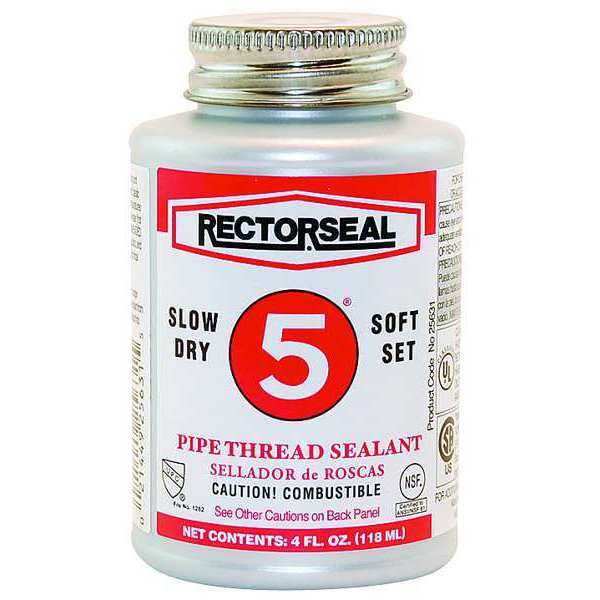 Thread Sealant, 4 oz., YellowSKU G1555111Categories Adhesives, Epoxy & SealantsDescription Pipe Thread Sealant, Cure Type Non-Hardening, Series No. 5, Container Size 4.8 fl oz, Container Type Brush-Top Can, Maximum Operating Temperature 400 Degrees F, Minimum Operating Temperature -50 Degrees F, Maximum Operating Pressure for Gases 2,600 psi, Maximum Operating Pressure for Liquids 12,000 psi, Color Yellow, For Fluid Type Air, Diesel Fuel Oil, Fuels, Kerosene, Petroleum Gas, Natural Gas, Propane, Steam, WatergraingerSKU: null, mscSKU: null, zoro_no: G1555111, mongo_id: 65bbe5e43aaddbd5a9ff381b