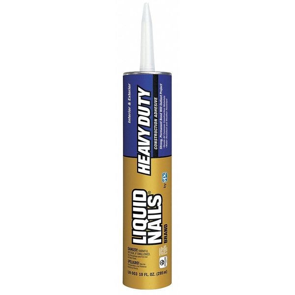 $8.19 / eachWeb priceConstruction Adhesive, Heavy Duty Series, Tan, 10 oz, CartridgeSKU G3370433Categories Adhesives, Epoxy & SealantsDescription Construction Adhesive, Adhesive Color Tan, Application Method Caulking Gun, Chemical Base Latex, Container Size 10 fl oz, Container Type Cartridge, Features Bonds Wide Range of Construction Materials, Bridges Gaps, Durable Bond Will Outlast Project, Flexible, Strong, Weather Resistant, Interior/Exterior Interior/Exterior, Working Time 20 min, VOC Content Weight Percentage 7 Percent, Water Resistance Water-Resistant, VOC Content Weight 70 g/L, Standards ASTM C557, Low Odor NograingerSKU: 444D84, mscSKU: , zoro_no: G3370433, mongo_id: 65bbe8729a749db822791991