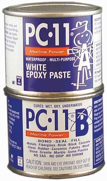 Epoxy Adhesive, PC-11 Series, Off-White, 1:01 Mix Ratio, 12 hr Functional Cure, CanSKU G3325481Categories Adhesives, Epoxy & SealantsDescription Epoxy Adhesive, Container Type Can, Coverage 0.4 to 3.2 sq ft, Cured Color Off-White, Features Impact Resistant, Included Components Resin and Hardener, Interior/Exterior Interior/Exterior, Low Odor Yes, Marine Grade Yes, Materials Bonded Fiberglass, Metal, Plastic, Tile, Wood, VOC Content Weight 0 g/L, VOC Content Weight Percentage 0 Percent, Water Resistance Waterproof, Working Time 30 min, Maximum Application Temperature 200 Degrees F, Maximum Performance Temperature 200 Degrees FgraingerSKU: null, mscSKU: null, zoro_no: G3325481, mongo_id: 65bbe6a83aaddbd5a9045276
