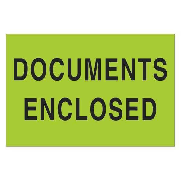 Tape Logic® Labels, "Documents Enclosed", 2" x 3", Fluorescent Green, 500/Roll