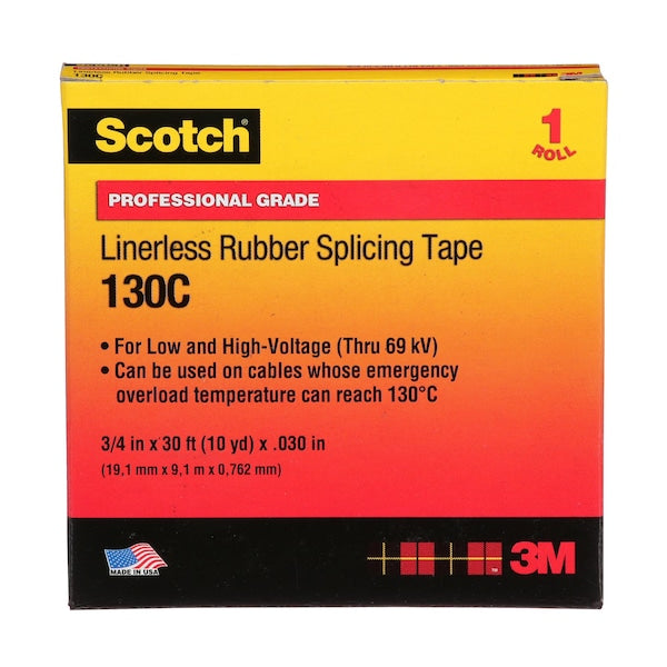 Rubber Splicing Tape, 130C, Scotch, 3/4 in W x 30 ft L, 30 mil thick, Black, 1 Pack