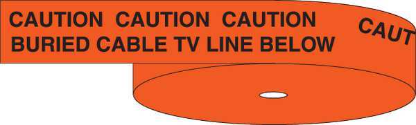 SKU G5650172Categories Adhesives, Epoxy & SealantsDescription Underground Warning Tape, Legend Caution Buried Cable TV Line, Orange, Material Identoline(R) Heavy Duty Polyethylene, Roll Length 1,000 ft, Roll Width 6 in, Thickness 4 mil, Black Legend ColorgraingerSKU: 20TK79, mscSKU: , zoro_no: G5650172, mongo_id: 65bbe5c13aaddbd5a9fe4e9b