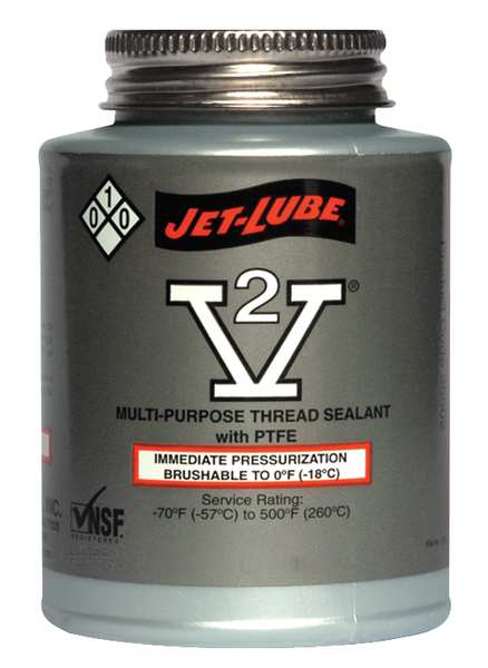 SKU G2569786Categories Adhesives, Epoxy & SealantsDescription Pipe Thread Sealant, Cure Type Non-Hardening, Series V-2, Container Size 16 fl oz, Container Type Brush-Top Can, Maximum Operating Temperature 500 Degrees F, Minimum Operating Temperature -70 Degrees F, Maximum Operating Pressure for Gases 2,000 psi, Maximum Operating Pressure for Liquids 10,000 psi, Color Off-White, For Fluid Type Gases, Potable Water, For Material Type Aluminum, Brass, Copper, Iron, Polyethylene, PVC, Fiberglass, Stainless Steel$48.24 / eachWeb price