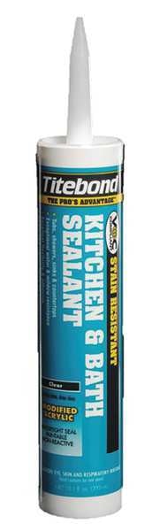 Kitchen & Bath Sealant, 10.1 oz, Cartridge, Clear, Modified Acrylic BaseSKU G3321221Categories Adhesives, Epoxy & SealantsDescription Sealant, Color Clear, Application Kitchen and Bath, Container Size 10 oz, Container Type Cartridge, Finishing Features Paintable, Resistance Properties Weather Resistant, Mildew Resistant, Stain Resistant, Water Resistant, Sealant Properties Flexible, Standards ASTM C834 Type C Grade NF, ASTM C834 Type OP Grade 0 Degrees C, FDA 21 CFR 177.2600, Full Cure Time 1 day, Maximum Performance Temperature 160 Degrees F, Minimum Performance Temperature 0 Degrees F, Working Time 15 min$13.31 / eachWeb price -