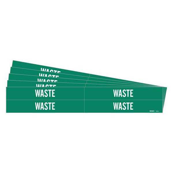 SKU G601915878Categories Adhesives, Epoxy & SealantsDescription Pipe Marker, Pipe Marker Mounting Style Adhesive Pipe Marker, Pipe Marker Legend Waste, Legend Text Color White, Character Height 3/4 in, Background Color Green, With or Without Arrows Without, Package Quantity 5$13.44 / eachWeb price