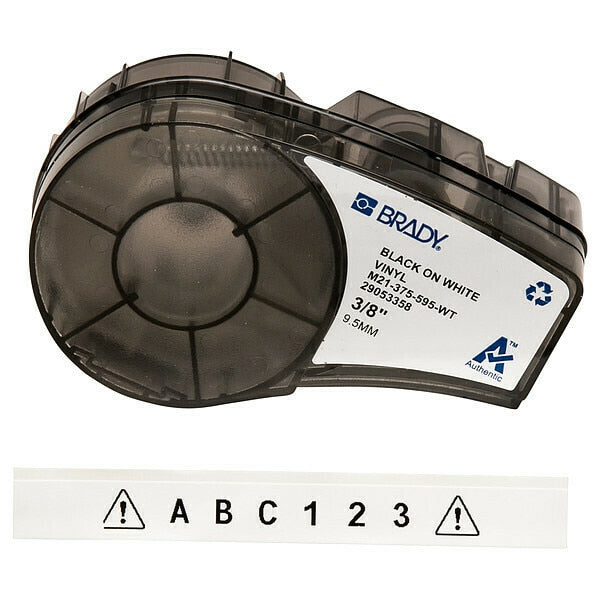 All Weather Permanent Adhesive Vinyl Label Tape, 3/8 in W x 21 ft L, Black on WhiteSKU G2946517Categories Adhesives, Epoxy & SealantsDescription Continuous Label Roll Cartridge, Compatible Grainger Part Number 22NA78, Compatible Mfr Part Number R6000, Label Color White, Label Finish Gloss, Label Material Vinyl, Label Width 3/8 in, Material Properties Autoclavable, Printer Series Compatibility BMP21-LAB, BMP21-PLUS, M210, M210-LAB, M211, Ribbon Color Black, Roll Length 21 ft, Vial/Tube Size 0.6 ml, For Print Method Thermal Transfer, Material Series B-595, Maximum Service Temperature 180 Degrees F, Minimum Service Temperature -40 Degrees FgraingerSKU: 3PXX4, mscSKU: , zoro_no: G2946517, mongo_id: 65bbe7ca9a749db822759362