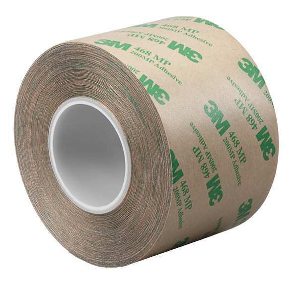 SKU G5655422Categories Adhesives, Epoxy & SealantsDescription Tape Type Adhesive Transfer Tape, Tape Sub-Type General Purpose Adhesive Transfer Tape, Tape Brand 3M(TM), Series 468MP, Imperial Tape Length 5 yd, Imperial Tape Width 12 in, Imperial Tape WxL 12 in x 5 yd, Common Industry Assembly & Manufacturing, Automotive, Aviation, Construction, Electronics, General Maintenance & Repair, Healthcare, Warehouse, Indoor and Outdoor, Maximum Tape Performance Temperature 400 Degrees F, Minimum Tape Performance Temperature -40 Degrees F, Continuous RollgraingerSKU: 24WG73, mscSKU: , zoro_no: G5655422, mongo_id: 65bbe8069a749db82276d9e9