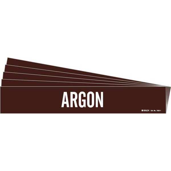 SKU G802140178Categories Adhesives, Epoxy & SealantsDescription Pipe Marker, Pipe Marker Mounting Style Adhesive Pipe Marker, Pipe Marker Legend Argon, Legend Text Color White, IIAR System Abbreviation Not Applicable, IIAR Phase Not Applicable, IIAR Pressure Level Not Applicable, Character Height 2 in, Background Color Brown, With or Without Arrows Without, Package Quantity 5$13.94 / eachWeb price