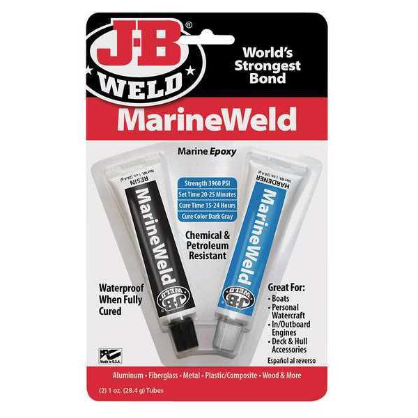 SKU G2821454Categories Adhesives, Epoxy & SealantsDescription Epoxy Adhesive, Container Type Tube, Coverage -, Cure Method Ambient, Cured Color Dark Gray, Hardener Volume 1 fl oz, Included Components Resin and Hardener, Interior/Exterior Interior/Exterior, Low Odor No, Marine Grade Yes, Materials Bonded Aluminum, Fiberglass, Metal, VOC Content Weight Percentage Less Than 1 Percent, Water Resistance Waterproof, Working Time 4 hr, Maximum Application Temperature 120 Degrees F, Maximum Performance Temperature 550 Degrees F, Resin Type EpoxygraingerSKU: 5DFV0, mscSKU: , zoro_no: G2821454, mongo_id: 65bbe7a53aaddbd5a90a9851
