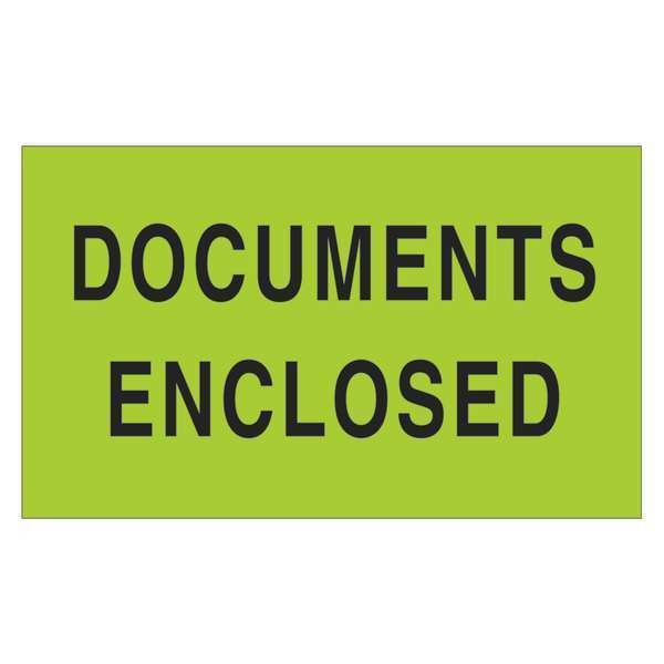 Tape Logic® Labels, "Documents Enclosed", 3" x 5", Fluorescent Green, 500/Roll
