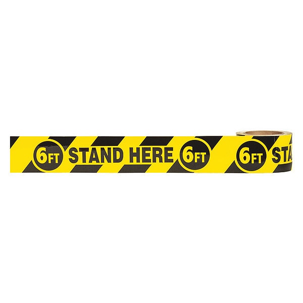 SKU G3155740Categories Adhesives, Epoxy & SealantsDescription Floor Marking Tape, Continuous Roll, Message, Striped, Black/Yellow, 3 in, 108 ft, 8 mil, Vinyl, Approved Vendor, Legend 6ft Stand Here 6ft, Message Color Black/Yellow, Glow In The Dark NograingerSKU: 56LV97, mscSKU: , zoro_no: G3155740, mongo_id: 65bbe7a09a749db82274ac55