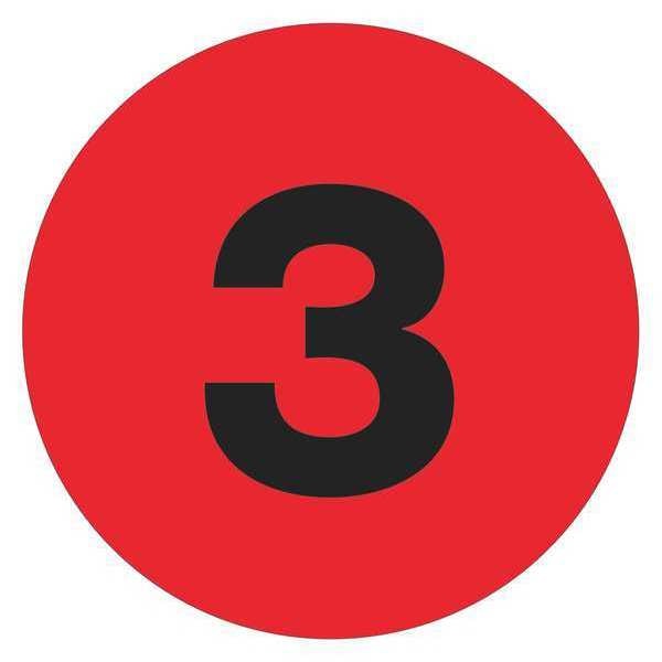 Tape Logic® Number Labels, "3", 2" Circle, Fluorescent Red, 500/Roll