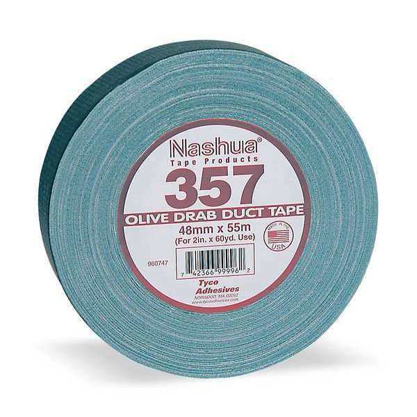 Duct Tape, 72mm x 55m, 13 mil, Olive DrabSKU G4345397Categories Adhesives, Epoxy & SealantsDescription Tape Thickness 13 mil, Tape Brand Nashua, Common Industry Assembly & Manufacturing, Construction, General Maintenance & Repair, Metalworking, Warehouse, Indoor and Outdoor, Imperial Tape Length 60 yd, Imperial Tape Width 2 13/16 in, Maximum Tape Performance Temperature 200 Degrees F, Minimum Tape Performance Temperature 40 Degrees F, Continuous Roll, Series 357, Tape Backing Material Polyethylene Coated Cloth, Tape Adhesive Material Rubber, Tape Sub-Type General Purpose Duct TapegraingerSKU: 10C002, mscSKU: , zoro_no: G4345397, mongo_id: 65bbe7473aaddbd5a90859d4