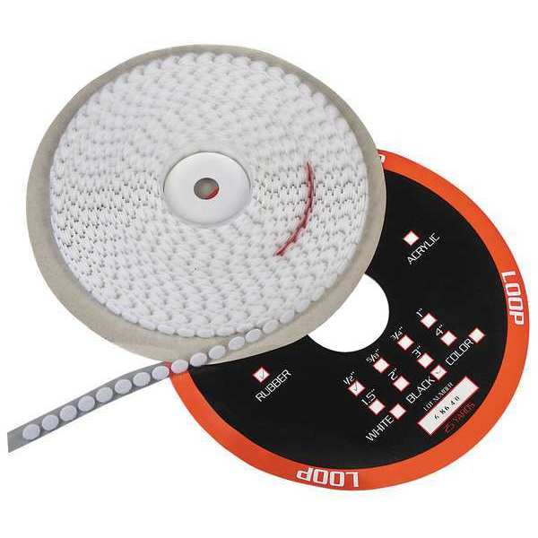 Reclosable Fastener, Disc, Rubber Adhesive, 5/8 in, White, 1261 PK