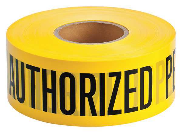 SKU G5677524Categories Adhesives, Epoxy & SealantsDescription Barricade Tape, Legend Authorized Personnel Only, Yellow, Material Polyethylene, Roll Length 1,000 ft, Roll Width 3 in, Standards OSHA 1910.144(a), Black Legend ColorgraingerSKU: 20TK96, mscSKU: , zoro_no: G5677524, mongo_id: 65bbe75b9a749db8227317c8