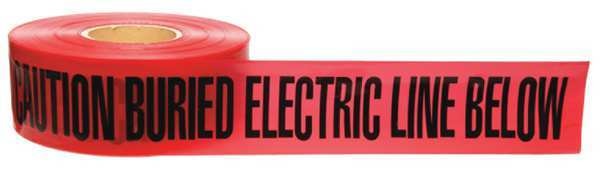 Underground Tape, Red/Black, 1000ft x 3 InSKU G5200264Categories Adhesives, Epoxy & SealantsDescription Underground Warning Tape, Legend Caution Buried Electric Line Below(Text on One Line), Red, Material Polyethylene, Roll Length 1,000 ft, Roll Width 3 in, Thickness 4 mil, Black Legend ColorgraingerSKU: 15Y421, mscSKU: , zoro_no: G5200264, mongo_id: 65bbe75b9a749db8227317ca