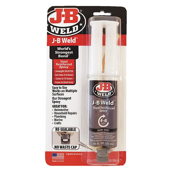 Epoxy Adhesive, Steel Reinforced Series, Gray, 1:01 Mix Ratio, 15 hr Functional Cure, SyringeSKU G300424497Categories Adhesives, Epoxy & SealantsDescription Epoxy Adhesive, Container Type Syringe, Cure Method Ambient, Cured Color Dark Gray, Included Components Resin and Hardener, Interior/Exterior Interior/Exterior, Low Odor No, Marine Grade No, Materials Bonded Composite, Concrete, Masonry, Metal, Plastic, PVC, Wood, VOC Content Weight Percentage Less Than 3 Percent, Water Resistance Water-Resistant, Working Time 4 hr, Maximum Application Temperature 120 Degrees F, Maximum Performance Temperature 300 Degrees F, Resin Type EpoxygraingerSKU: 60NJ58, mscSKU: 31506884, zoro_no: G300424497, mongo_id: 65bbe9e622d7a989a9984fdb