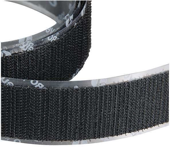 Reclosable Fastener, Rubber Adhesive, 75 ft, 1 in Wd, Black