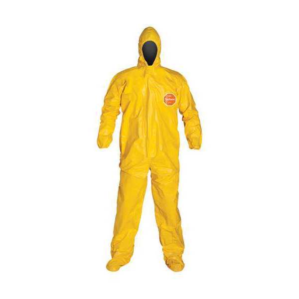 Hooded Coverall, 4 PK, Yellow, Tychem(R) 2000, Adhesive