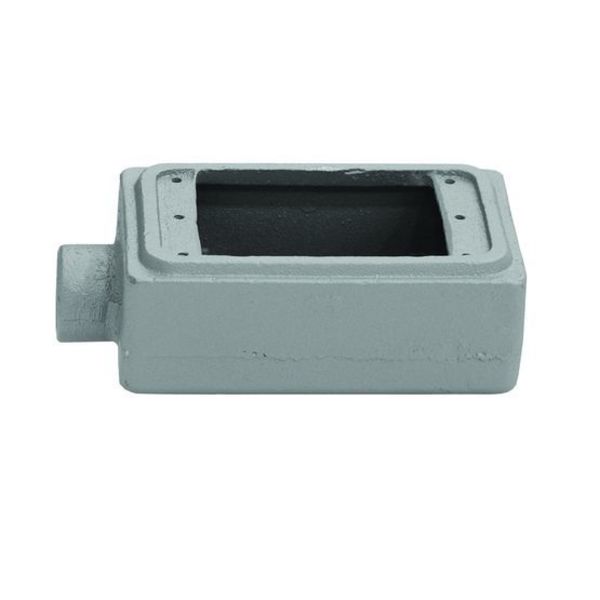 SKU G4006003CategoriesDescription Weatherproof Cover, Mounting Box FS and FD Cast Hub Device Boxes, For Use With Pilot Light, Mounting Orientation Horizontal or Vertical, Lid Style No Lid, Number of Gangs 1, Cover Material Malleable Iron, Color Gray, Height 4 9/16 in, Width 2 13/16 in, NEMA Rating 3R, Standards C22.2 No. 18.1, UL 514A, Includes Mounting Hardware and Sealing GasketgraingerSKU: 10L157, mscSKU: , zoro_no: G4006003, mongo_id: 65bbe8bc22d7a989a9910e0d