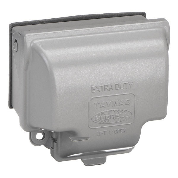 Description Weatherproof Cover, Mounting Box FS or FD Weatherproof Boxes, For Use With Outdoor Receptacles, Mounting Orientation Horizontal, Lid Style (2) Self Closing, Number of Gangs 1, Gasket Material Neoprene, Cover Material Die-Cast Zinc, Color Gray, Height 2 13/16 in, Width 4 39/64 in, Depth 1 in, NEMA Rating 3R, Standards UL and CSA, Includes Installation Hardware and Gasket