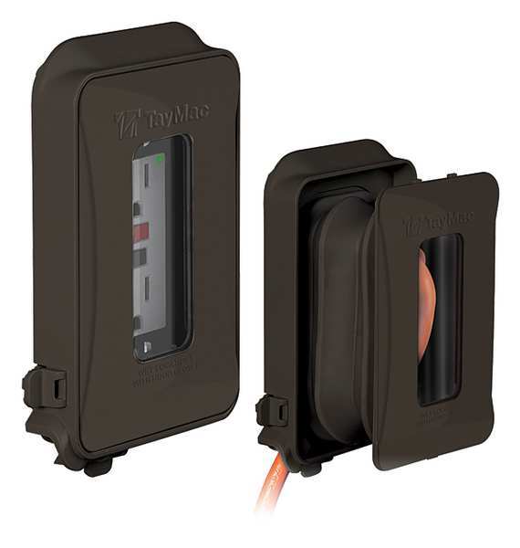 SKU G4994333CategoriesDescription While In Use Weatherproof Cover, Body Material Polycarbonate and Synthetic Neoprene Rubber, Mounting Orientation Horizontal or Vertical, Receptacle Type GFCI, Depth 1 in to 3 1/2 in, Number of Gangs 1, Width 3 5/8 in, Height 5 3/4 in, Features Low Profile, Gasket Material Polyethylene Foam, Color Bronze, Standards UL and ETLgraingerSKU: null, mscSKU: null, zoro_no: G4994333, mongo_id: 65bbe6a53aaddbd5a9043ef0