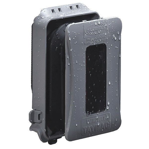 1 -Gang Multi-directional While In Use Weatherproof Cover, 4" W, 5.5" H, PolycarbonateSKU G4994297CategoriesDescription While In Use Weatherproof Cover, Body Material Polycarbonate, Mounting Orientation Horizontal or Vertical, Receptacle Type Decora/GFCI Receptacle, Duplex, Toggle Switch and Single Receptacle, Depth 5 in, Number of Gangs 1, Width 3 3/4 in, Height 5 1/2 in, Features Deep, Gasket Material Polyethylene Foam, Color Gray, Standards UL, Includes Attached Gasket and Mounting Hardware$24.49 / eachWeb price -