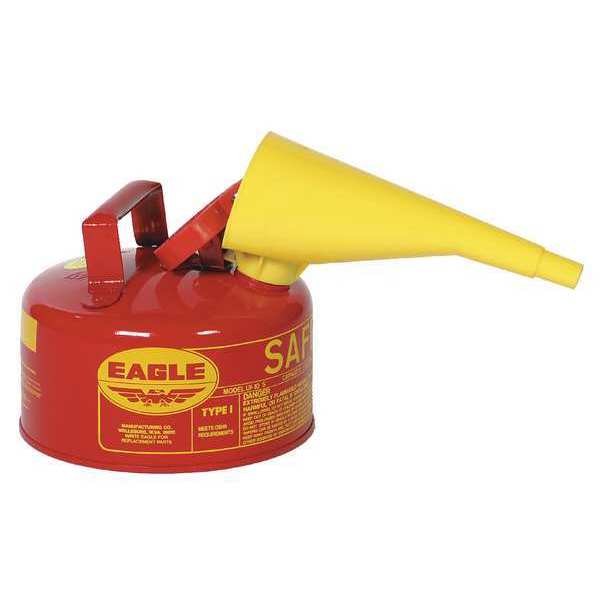 SKU G1850843CategoriesDescription Type I Safety Can, Can Type Type I, DOT Approved No, Capacity 1 gal, Compatible Fluids Flammables, Color Red, Can Material Steel, Material Finish Powder Coated, Hose Outside Diameter Not Applicable, Included Hose/Funnel Funnel, Can Diameter 9 in, Overall Height 8 in, Includes Faucet No, Faucet Channel Diameter Not Applicable, Overall Width Not Applicable, Cap Features Self-Closing, Footprint Shape Circle, Includes Polyethylene Pour Funnel, Includes Flame Arrester YesgraingerSKU: 3NKP8, mscSKU: , zoro_no: G1850843, mongo_id: 65bbe97422d7a989a9957f2a