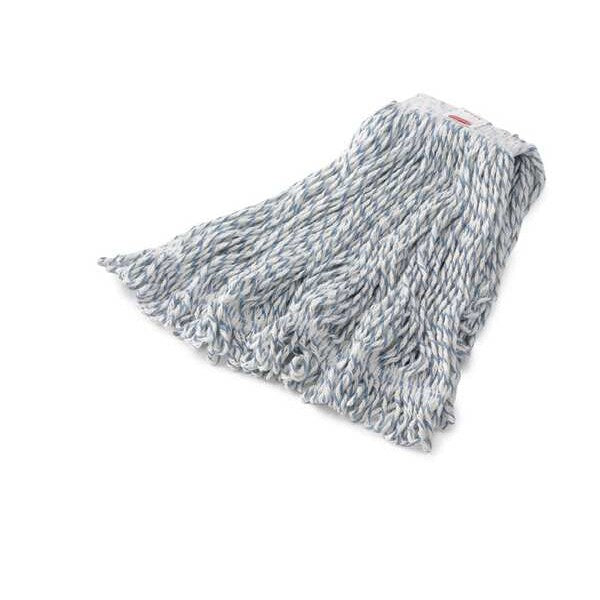 1 in String Wet Mop, 16 oz Dry Wt, Side Gate Connection, Looped-End, Blue/White, Cotton/Synthetic