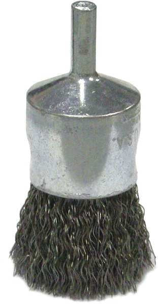 Description End Brush, End Brush, Bristle Type Crimped Wire, Brush Dia. 1 in, Abrasive Shank Size 1/4 in, Wire Dia. 0.006 in, Bristle Trim Length 1 in, Abrasive Material Stainless Steel, Max. RPM 22,000 RPM, Overall Length 3 in
