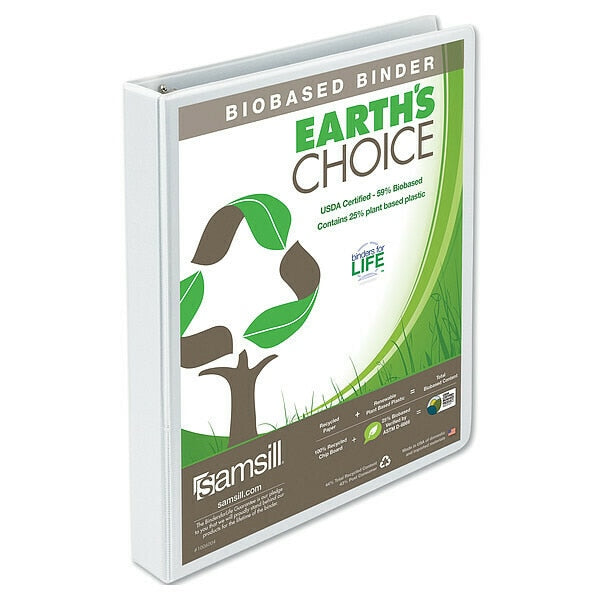 • 1" Round Ring View Binder, Earth's Choice Biodegradable, White