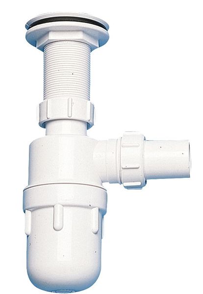 Description Trap, Nominal Pipe Size 1 1/2 in, Pipe Outside Diameter 1 1/2 in, Outlet Connection Type Compression, Product Type Trap, Includes Back Nut, PVC Plug, Sealing Cup, Strainer, Waste Body, Waste Fitting, Bend Radius 90 Degrees , Inlet Connection Type Compression, Material Plastic, Color White, Trap Type P-Trap, Overall Length 10 1/2 in