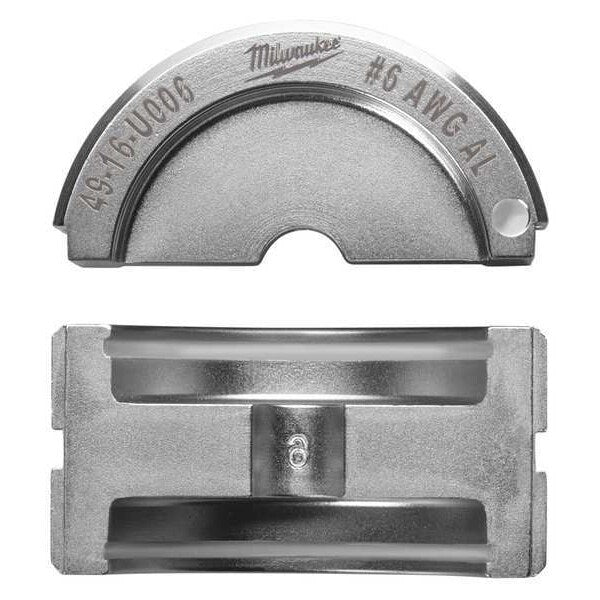Description Upper and Lower Crimping Die, Compatible Connector Type U Style Dies, Compatible Cable Type Electrical Wire and Cable Crimping, Number of Crimping Sizes 2, Connector Color Code Gray, Number of Pieces 1, Maximum Crimping Force 6 ton, Compatible with Brand M18(TM) FORCE LOGIC(TM), Compatible with Manufacturer Model Number 2679-20, 49-16-U000, Compatible with Series U Style, Application Electrical Wire and Cable Crimping, Crimping Capacity 6 AWG, Includes #6 Aluminum U Style Die (49-16-U006)