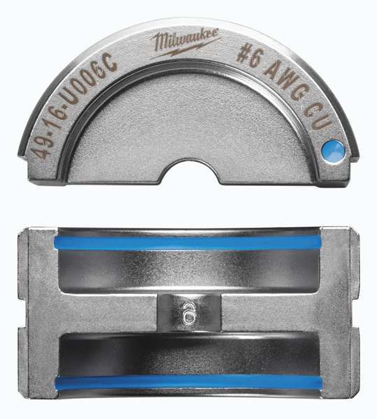 Description Upper and Lower Crimping Die, Compatible Connector Type U Style Dies, Compatible Cable Type Electrical Wire and Cable Crimping, Number of Crimping Sizes 2, Connector Color Code Blue, Number of Pieces 1, Maximum Crimping Force 6 ton, Compatible with Brand M18(TM) FORCE LOGIC(TM), Compatible with Manufacturer Model Number 2679-20, 49-16-U000, Compatible with Series U Style, Application Electrical Wire and Cable Crimping, Crimping Capacity 6 AWG, Includes #6 Copper U Style Die (49-16-U006C)