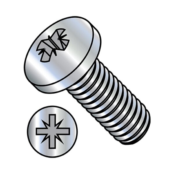• #6-32 x 1/2 in Pozidriv Pan Machine Screw, Zinc Plated Steel, 10000 PK