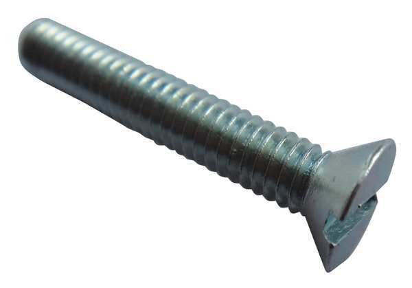 • #8-32 x 1 in Slotted Flat Machine Screw, Zinc Plated Steel, 100 PK