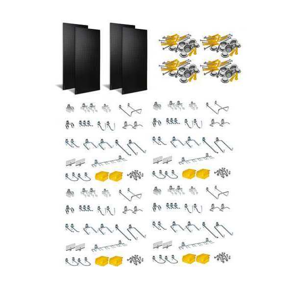 (4) 24 In. W x 48 In. H x 1/4 In. D ABS Textured Pegboards 96 pc. DuraHook Assortment 8 Hanging Bins