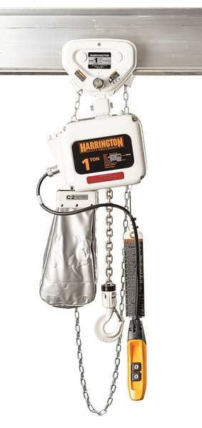Electric Chain Hoist, 4,000 lb, 15 ft, Geared Trolley, WhiteSKU G2209000Categories Electric and Cordless ToolsDescription Electric Chain Hoist, Duty Classification H4, Mount Type Geared Trolley, Maximum Lifting Capacity 4,000 lb, Number of Speeds 1, Programmable Non-Programmable, Fixed Lift Speed 14 fpm, Minimum Lift Speed Not Applicable, Maximum Lift Speed Not Applicable, Trolley Speed Not Applicable, Maximum Lifting Length 15 ft, Current at Minimum Voltage 2.4 A, Current at Maximum Voltage 2.4 A, Motor Horsepower 2 3/8 hp, Operating Voltage 230/460V AC, Headroom 25 in, For Minimum Beam Height 5 ingraingerSKU: 33RV86, mscSKU: , zoro_no: G2209000, mongo_id: 65bbe97a22d7a989a9959b4a