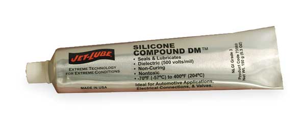 SKU G1778217Categories Electric and Cordless ToolsDescription Dielectric Grease, Product Type Grease, Series Silicone Compound DM, Container Type Tube, Container Size 5 oz, For Use On Battery Terminals, Cable, Electrical Assemblies, Moisture Proofing Ignition Systems, Spark Plug Connections, ISO Viscosity Grade Not Applicable, NLGI Viscosity Grade 2, Thickener Type Inorganic, Viscosity @ 100 Deg F Not Applicable, Standards MIL C-21567A (DM-2), MIL S-8660C (DM-3), NATO #S-736, NSF H1 Registered #132225 (DM 2), #132224 (DM 3), Color White, Product Form PastegraingerSKU: , mscSKU: , zoro_no: G1778217, mongo_id: 65bbe92e22d7a989a993d2e9