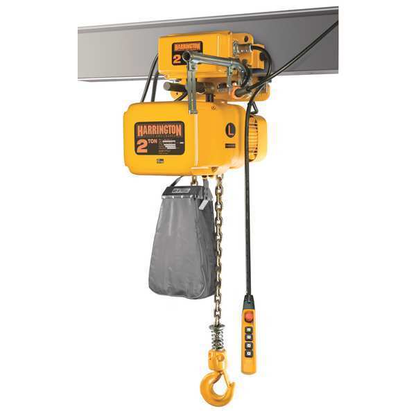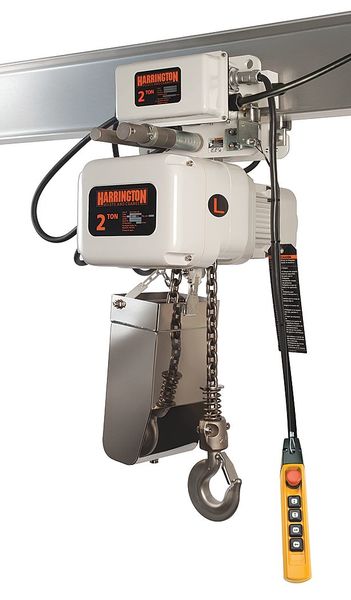 Electric Chain Hoist, 4,000 lb, 20 ft, Motorized Trolley, WhiteSKU G2208790Categories Electric and Cordless ToolsDescription Electric Chain Hoist, Duty Classification H4, Mount Type Motorized Trolley, Maximum Lifting Capacity 4,000 lb, Number of Speeds 2, Programmable Programmable by VFD, Fixed Lift Speed Not Applicable, Minimum Lift Speed 2.5 fpm, Maximum Lift Speed 14 fpm, Trolley Speed 40 fpm, Maximum Lifting Length 20 ft, Current at Minimum Voltage 2.4 A, Current at Maximum Voltage 1.7 A, Motor Horsepower 2 3/8 hp, Operating Voltage 208-230/460V AC, Headroom 22 13/32 in, For Minimum Beam Height 4 29/32 ingraingerSKU: 33RW24, mscSKU: , zoro_no: G2208790, mongo_id: 65bbe90822d7a989a992ea5b