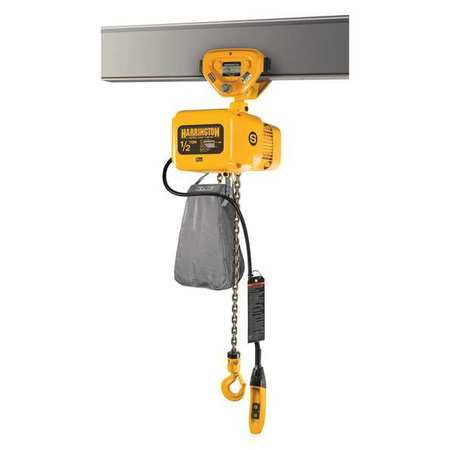 Electric Chain Hoist, 500 lb, 20 ft, Geared Trolley, WhiteSKU G8913116Categories Electric and Cordless ToolsDescription Electric Chain Hoist, Duty Classification H4, Mount Type Geared Trolley, Maximum Lifting Capacity 500 lb, Number of Speeds 1, Programmable Non-Programmable, Fixed Lift Speed 15 fpm, Minimum Lift Speed Not Applicable, Maximum Lift Speed Not Applicable, Trolley Speed Not Applicable, Maximum Lifting Length 20 ft, Current at Minimum Voltage 3.4 A, Current at Maximum Voltage 3.4 A, Motor Horsepower 3/4 hp, Operating Voltage 230/460V AC, Headroom 16 5/16 in, For Minimum Beam Height 3 3/16 ingraingerSKU: 33RV78, mscSKU: , zoro_no: G8913116, mongo_id: 65bbe70d3aaddbd5a906ff9f