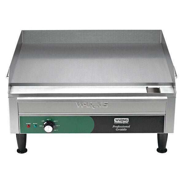 Electric Griddle, Countertop, 3300WSKU G2793297Categories Electric and Cordless ToolsDescription Electric Countertop Griddle, Power Source Electric, Cooking Surface Depth 23 in, Cooking Surface Width 14 in, Overall Height 9 3/4 in, Overall Width 22 1/4 in, Overall Depth 28 in, Material Stainless Steel, Control Type Thermostatic, Voltage 240V AC, Wattage 3,300 W, Installation Type Countertop, Maximum Operating Temperature 570 Degrees F, Current 13.8 A, Plug Type 6-20, Weight 94.6 lbgraingerSKU: 55MU79, mscSKU: , zoro_no: G2793297, mongo_id: 65bbe8c922d7a989a9916d2f