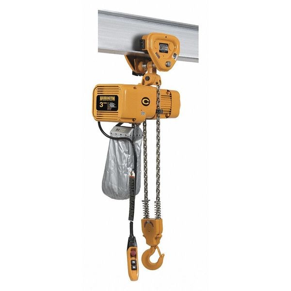 Electric Chain Hoist, 500 lb, 10 ft, Push Trolley, WhiteSKU G8913423Categories Electric and Cordless ToolsDescription Electric Chain Hoist, Duty Classification H4, Mount Type Push Trolley, Maximum Lifting Capacity 500 lb, Number of Speeds 2, Programmable Programmable by VFD, Fixed Lift Speed Not Applicable, Minimum Lift Speed 2.5 fpm, Maximum Lift Speed 15 fpm, Trolley Speed Not Applicable, Maximum Lifting Length 10 ft, Current at Minimum Voltage 3.6 A, Current at Maximum Voltage 1.8 A, Motor Horsepower 3/4 hp, Operating Voltage 208-230/460V AC, Headroom 16 5/16 in, For Minimum Beam Height 3 3/16 ingraingerSKU: 33RW37, mscSKU: , zoro_no: G8913423, mongo_id: 65bbe6eb3aaddbd5a9061ad2