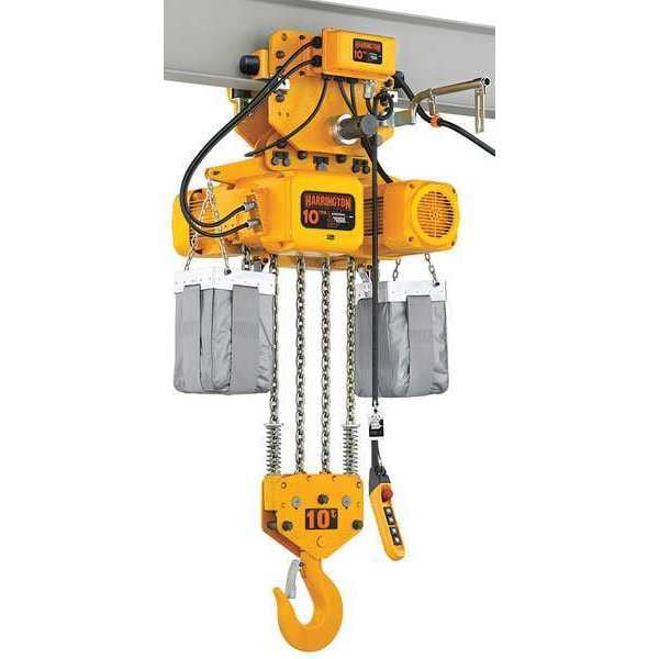 SKU G9923313Categories Electric and Cordless ToolsDescription Electric Chain Hoist, Duty Classification H4, Mount Type Motorized Trolley, Maximum Lifting Capacity 20,000 lb, Number of Speeds 2, Programmable Programmable by VFD, Fixed Lift Speed Not Applicable, Minimum Lift Speed 3.5 fpm, Maximum Lift Speed 11 fpm, Trolley Speed 40 fpm, Maximum Lifting Length 15 ft, Current at Minimum Voltage 17.3 A, Current at Maximum Voltage 1.7 A, Motor Horsepower 4 3/4 hp, Operating Voltage 230V AC, Headroom 46 1/2 in, For Minimum Beam Height 6 29/32 ingraingerSKU: 25K762, mscSKU: , zoro_no: G9923313, mongo_id: 65bbe8bc22d7a989a9911ebe